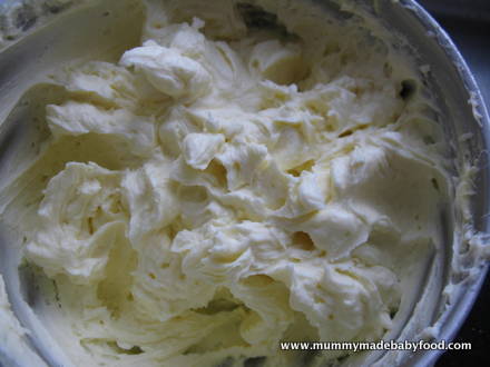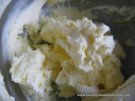 Note that it is essential for the butter to be at room temperature before attempting this recipe. This will require some advance planning and taking it out of the fridge a few hours before you need to use it. If you try to 'cheat' by using the microwave to soften the butter, it will melt too much, and you will end of with runny cream cheese icing! I prefer to also let the cream cheese warm up to room temperature, as the softer texture makes it easier to beat.