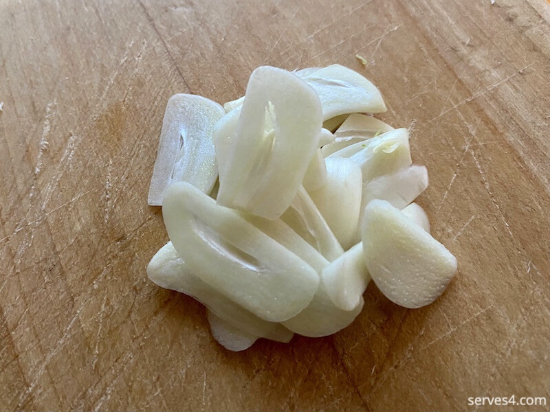 Rinse and and slice the cabbage, and slice the mushrooms. Set aside.