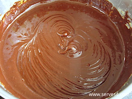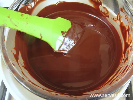 Meanwhile, melt the chocolate in a heatproof container over a pan of barely simmering water. Stir occasionally until thoroughly melted and and completely smooth.