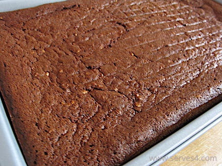 Pour the the chocolate mixture into the cake pan, smooth the top, and bake in the preheated oven for 50-55 minutes. Remove from oven, and allow the cake to cool for several minutes. Do not worry if the centre sinks slightly - this is normal!
