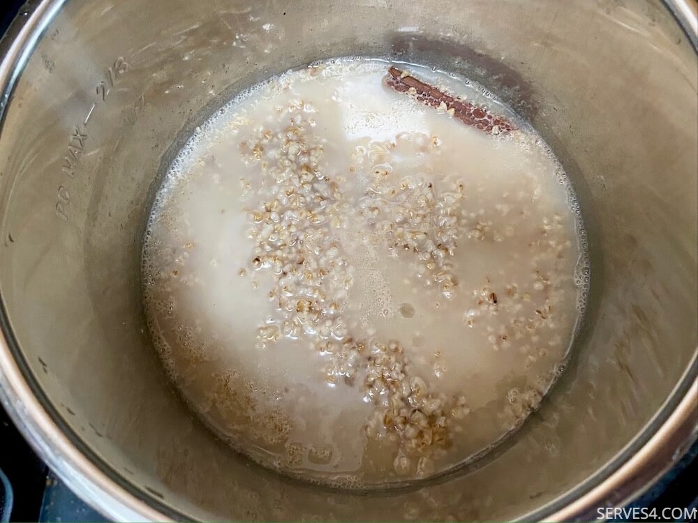Add the cinnamon stick if using, and place the inner bowl into the Instant Pot.
